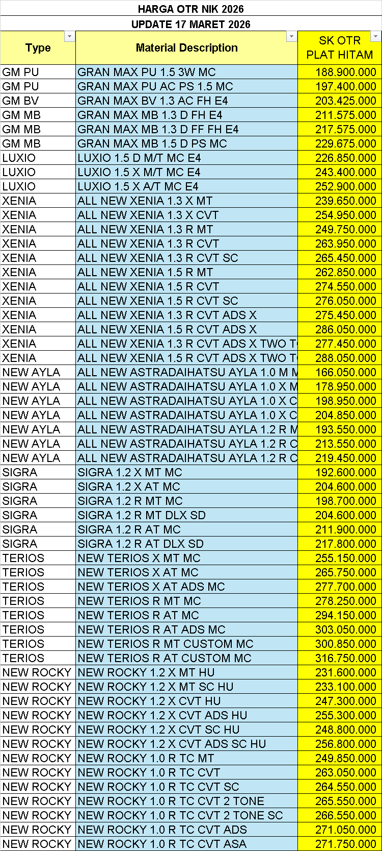 PRICELIST